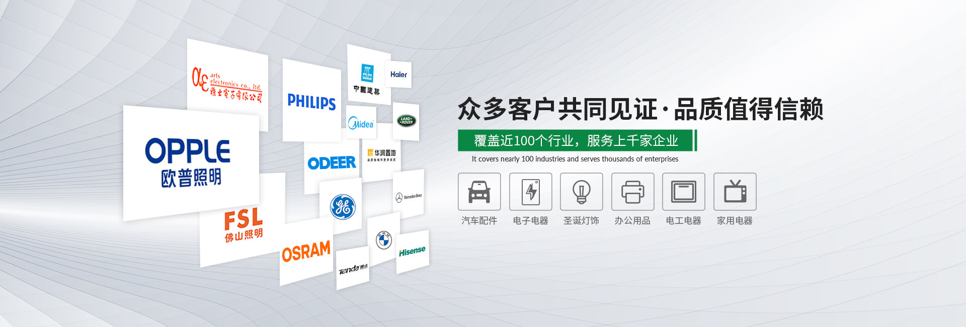 產(chǎn)品廣泛應用于燈飾、家電、OA設備、IT、通訊、電子、電工電器、建材、電線電纜等多種行業(yè)